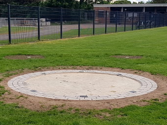 Um wettkampforientiertes Diskuswurftraining zu ermöglichen sowie Wettkämpfe in allen Altersklassen durchführen zu können, entsteht eine komplett neue Diskuswurfanlage. Vor knapp 10 Jahren wurde ein alter Diskusring entfernt und leider bis heute nicht ersetzt. Aufgrund des fehlenden Diskusrings konnten die komplexen Drehtechniken ausschließlich auf dem Rasen stattfinden, sodass die Wettkampfvorbereitung nicht optimal war. Darüber hinaus stellte das Fehlen eines Schutznetzes eine weitere Herausforderung im Training bezüglich der Sicherheit dar. Der neue Diskusring samt Schutznetz entsteht an komplett neuer Position. Auf der freien Fläche hinter dem Tor des Naturrasenplatzes findet die wettkampffähige Diskusanlage ihren Platz.