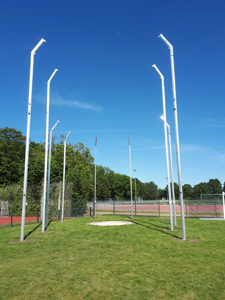 Nachdem der Belag ausgetrocknet war, wurden die Linierungen aufgetragen. Im letzten Schritt wird der Zaun und ein Tor installiert. Durch eine Bande, welche die Anlaufverlängerung einrahmen wird, ist sicheres Speerwerfen möglich.