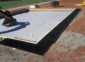 Anschließend wurde die Fläche eine wasserdurchlässigen Betonschicht mit darunter liegenden Drainagen installiert und die Fundamente für die Geräte vorbereitet.
