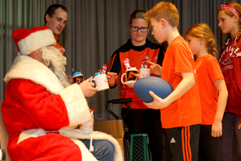 Beim Hallenquiz, moderiert von Kristof Seubert, bei dem alle großen und kleinen Gäste gefordert waren, durfte jeder mitmachen und zeigen ob er sich beim Sportverein Seckenheim, beim Sport allgemein und beim Thema Weihnachten auskennt. Bevor nun der Nikolaus seine Geschenke verteilte, bedankte sich Abteilungsleiter Gerhard Elißer auch bei den finanziellen Unterstützern der Leichtathletikabteilung; Fa. Fliesen Seitz aus Seckenheim, sowie GroSe-Immobilien aus Seckenheim, und die Familie Gustav und Ilse Jung, mit deren finanziellen Spritze Wettkampftrikots, Sportgeräte, oder auch die Weihnachtsgeschenke angeschafft werden konnten.