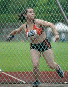 Kim, ebenfalls im Block Wurf am Start, begann ihren Wettkampf mit dem Diskuswurf und konnte mit 23,75m gleich ihre bisherige Bestleistung deutlich übertreffen. Beim Hürdenlauf ärgerte sich Kim über ihren schlechten Start, denn mit 16,35 sec blieb sie trotzdem nur ganz knapp über ihrer bisherigen Bestleistung. Der Weitsprung war mit 3,62m in Ordnung, allerdings blieb sie beim Kugelstoßen mit 8,35m doch etwas unter den Erwartungen. Dafür konnte sich Kim dann zum Abschluss über eine neue Bestzeit über 100m freuen, 15,94 sec. Insgesamt erreichte sie 1936 Punkte und damit Rang 6 bei der W15.