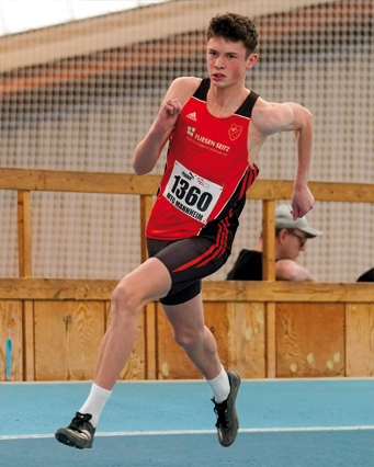 Für Patrick Jung begann der Wettkampftag in der m15 mit dem Weitsprung. Mit den 5m klappte es an diesem Tag leider noch nicht ganz, aber mit 4,98m (Platz 11) war er sehr nahe dran, so dass man davon ausgehen kann, dass, wie bei Lotte mit Sicherheit auch, diese Marke bald wieder fallen wird. Danach trat Patrick noch über die 60m an. Hier lief er in 8,12 Sekunden neue PB und wurde Zwölfter. Ebenfalls in der m15 startete Torben Stenzel im 300m-Lauf. Etwas nervös wegen der ungewohnten Distanz, ging er im letzten von 5 Zeitläufen an den Start. Und er machte seine Sache ausgezeichnet. Er konnte mit dem vor ihm gestarteten Läufer gut mithalten und hatte dann am Ende, als erfahrener 800m Läufer, das bessere Stehvermögen. Er gewann in 41,40 Sekunden seinen Lauf und konnte sich, nach Auswertung aller Läufe, über den 3. Platz und somit die zweite Bronzemedaille für die Seckenheimer Athleten freuen.