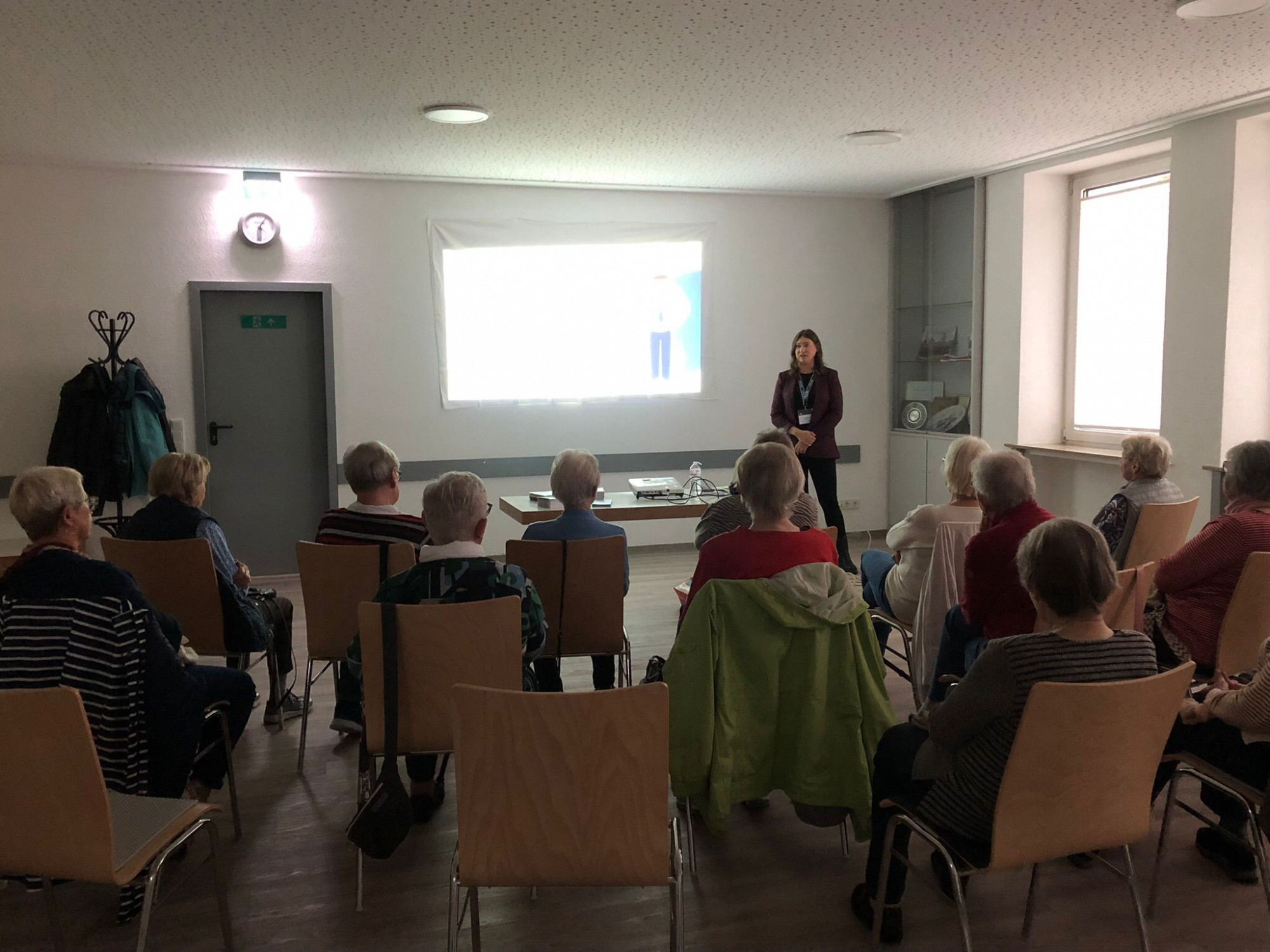Am Mittwoch, den 24.09.25 fand im Lore-Marzenell-Saal erstmals eine Informationsveranstaltung für interessierte Seniorinnen und Senioren zum Thema Schockanrufe und andere Maschen von Trickbetrügern statt. Vanessa Schmitt vom Polizeipräsidium Mannheim informierte versiert und unterhaltsam über die neuesten Tricks der Betrüger. Nach einer fast einstündigen Präsentation stand sie den Besuchern für Fragen zur Verfügung. Die kamen in großer Anzahl, hatte doch fast jede/r der Anwesenden schon einmal über mindestens einen dieser Kontakte zu berichten. Am Ende war man sich einig, zwar nicht vor Betrügern gefeit, aber zumindest aufmerksamer und achtsamer zu sein.